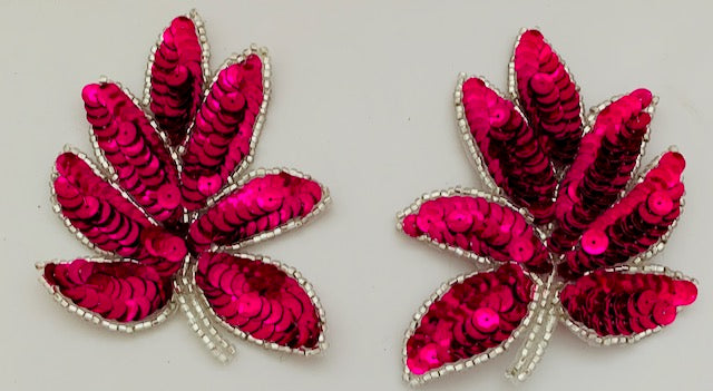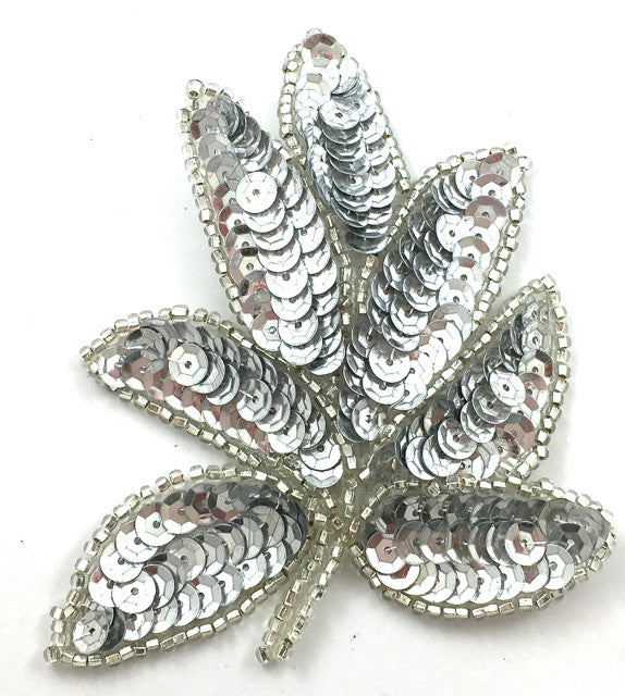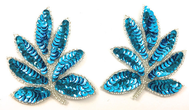 Leaf Pair or Single and Pairs Various Color Sequins with Silver beads 4" x 3"