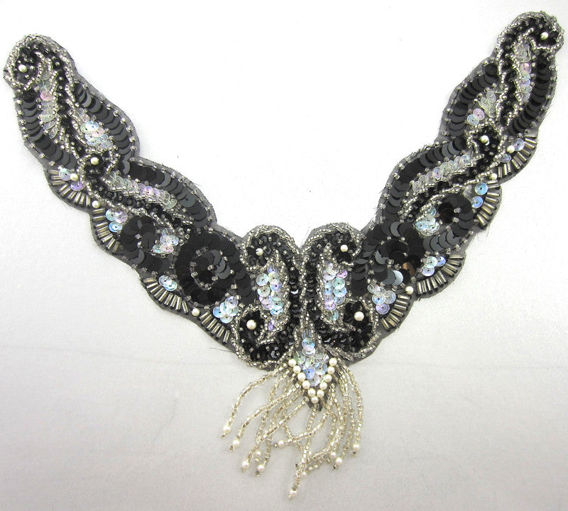 Designer Motif Neck Line with Black Silver Iridescent Sequins an Beads 11" x 11"