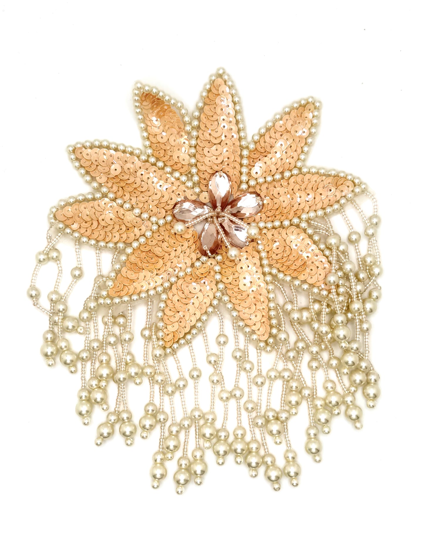 Epaulet Peach Sequins with White Beads and Pearls 8” x 6”