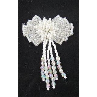 Epaulet White Beads Bow 3" x 2"