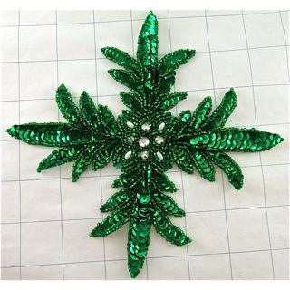 Designer Motif with Green Sequins and Beads and Rhinestones 7" x 7"