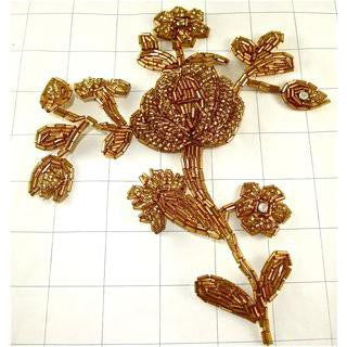 Flower High Quality Vintage Appliqué with Gold Beads and Rhinestones 7" x 6.5"