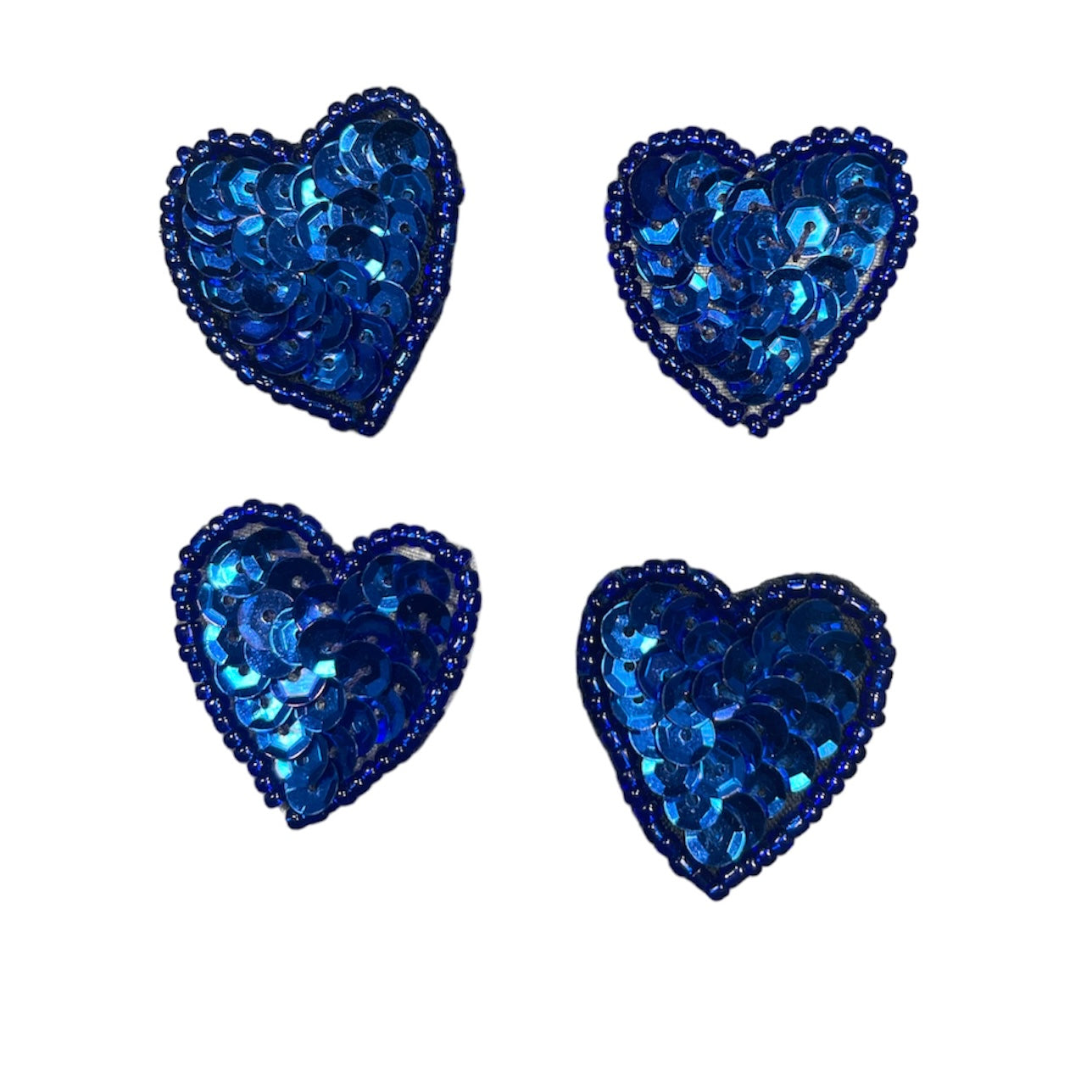 Royal Blue Heart Set of Four with Sequins and Beads 1" (each)
