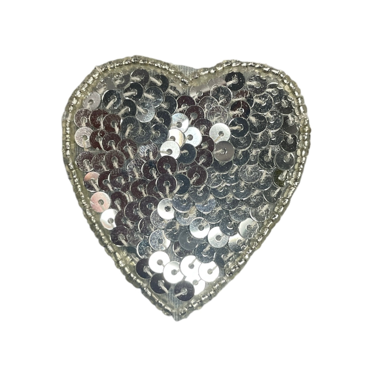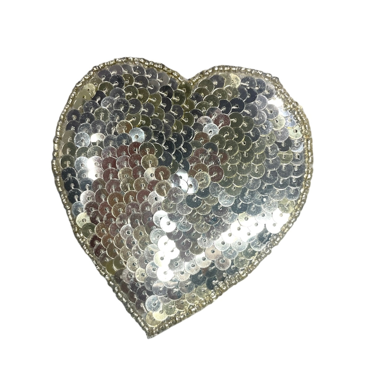Choice of Size Heart with Silver Flat Sequins and Beads