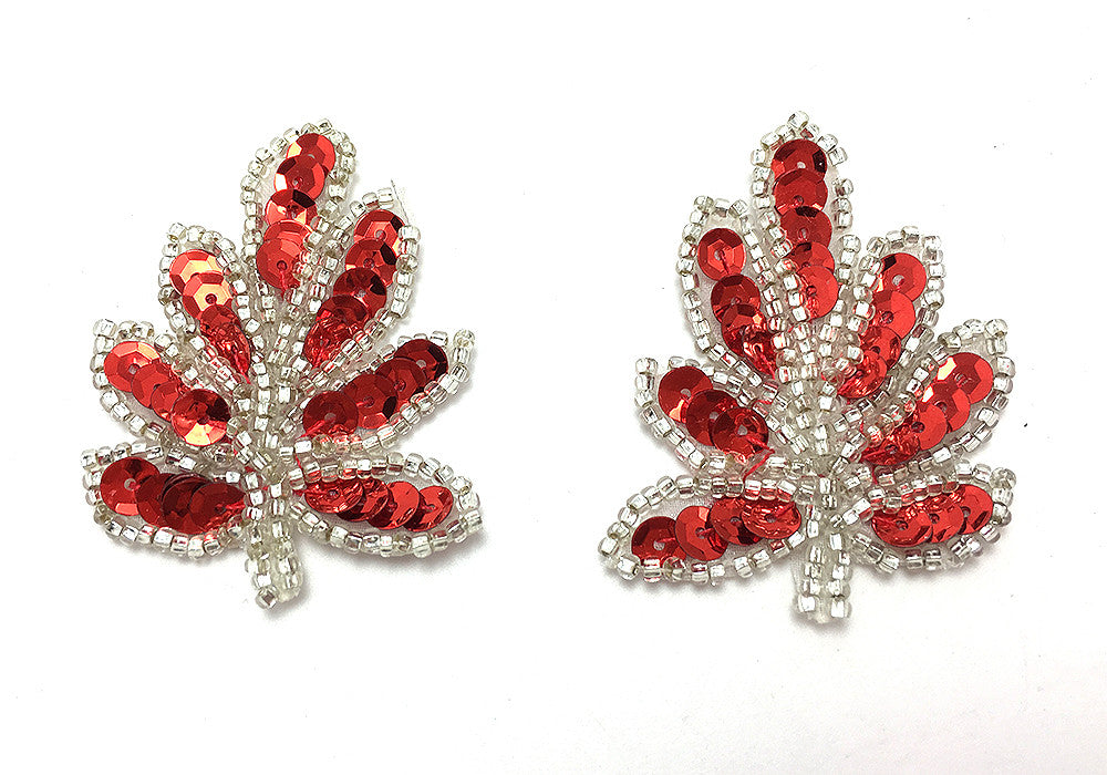 Leaf Pair with Choice of Pink, Red or Silver Sequins and Silver Beads 1.5" x 2"