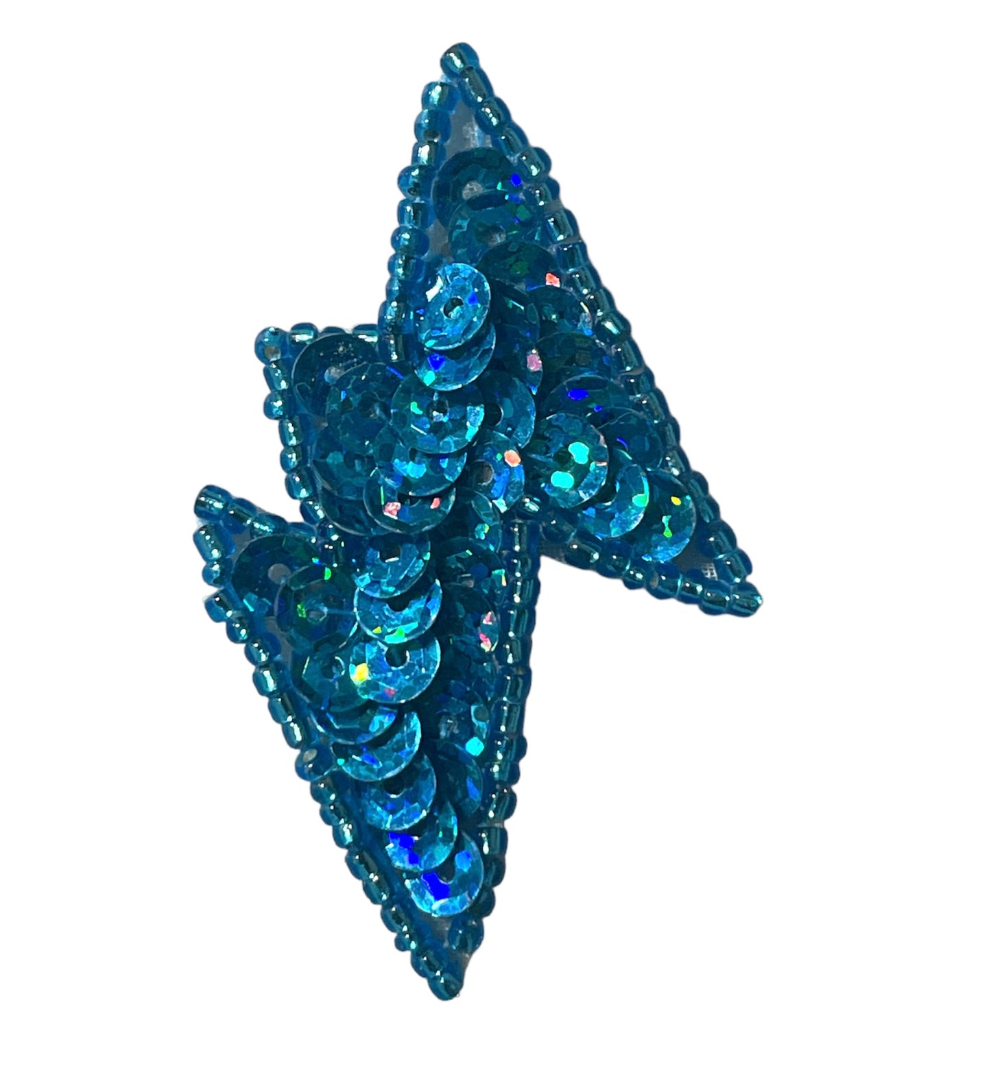 Turquoise Lightning Bolt with Laser Sequins and Beads 2" x 2.25"