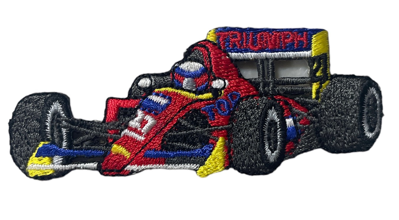 Race Car Embroidered Iron-On 3" x 1"