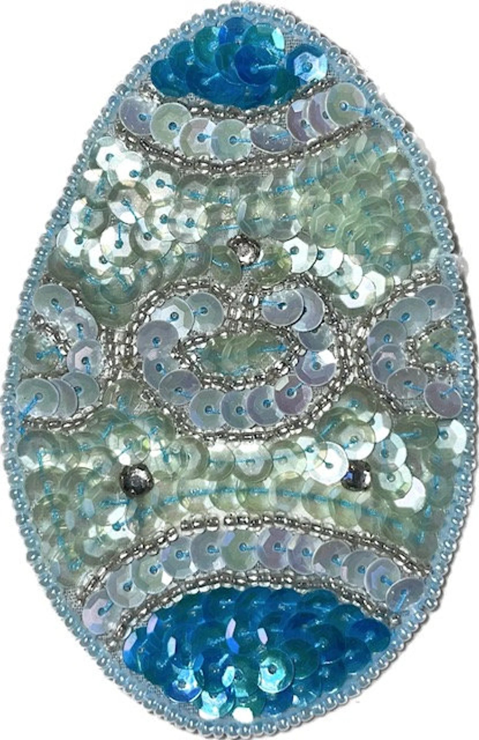 Turquoise Easter Egg Sequin Beaded 3.5 x 2.5