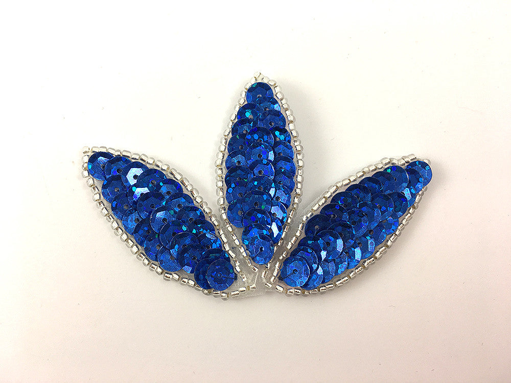 Choice of Leaf with Spotlight Laser Light or Dark Blue Sequins and Silver Beads 3.25" x 2.25"
