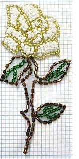 Rose Flower with White, Gold, Bronze and Green Beads 3.75" x 2”
