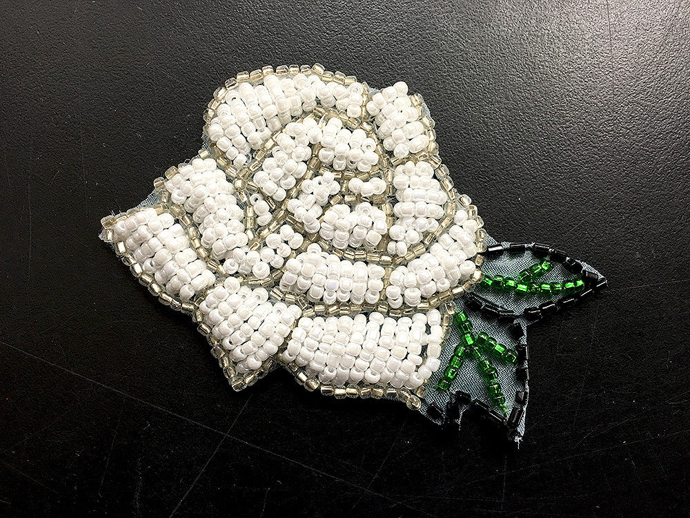 Rose Flower with White, Silver, Black and Green Beads 3” x 2”