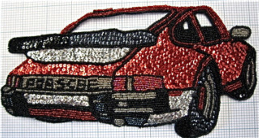 Porsche with Red Silver and Black Sequins and Beads 10" x 5"