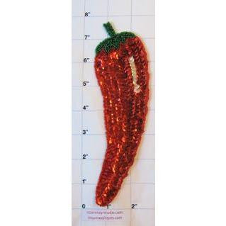 Chili Pepper with Red, Green and White Sequins with Red and Green Beads 8" x 2.5"