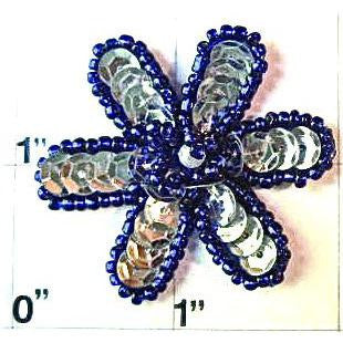 SILVER FLOWER WITH ROYAL BEADED TRIM