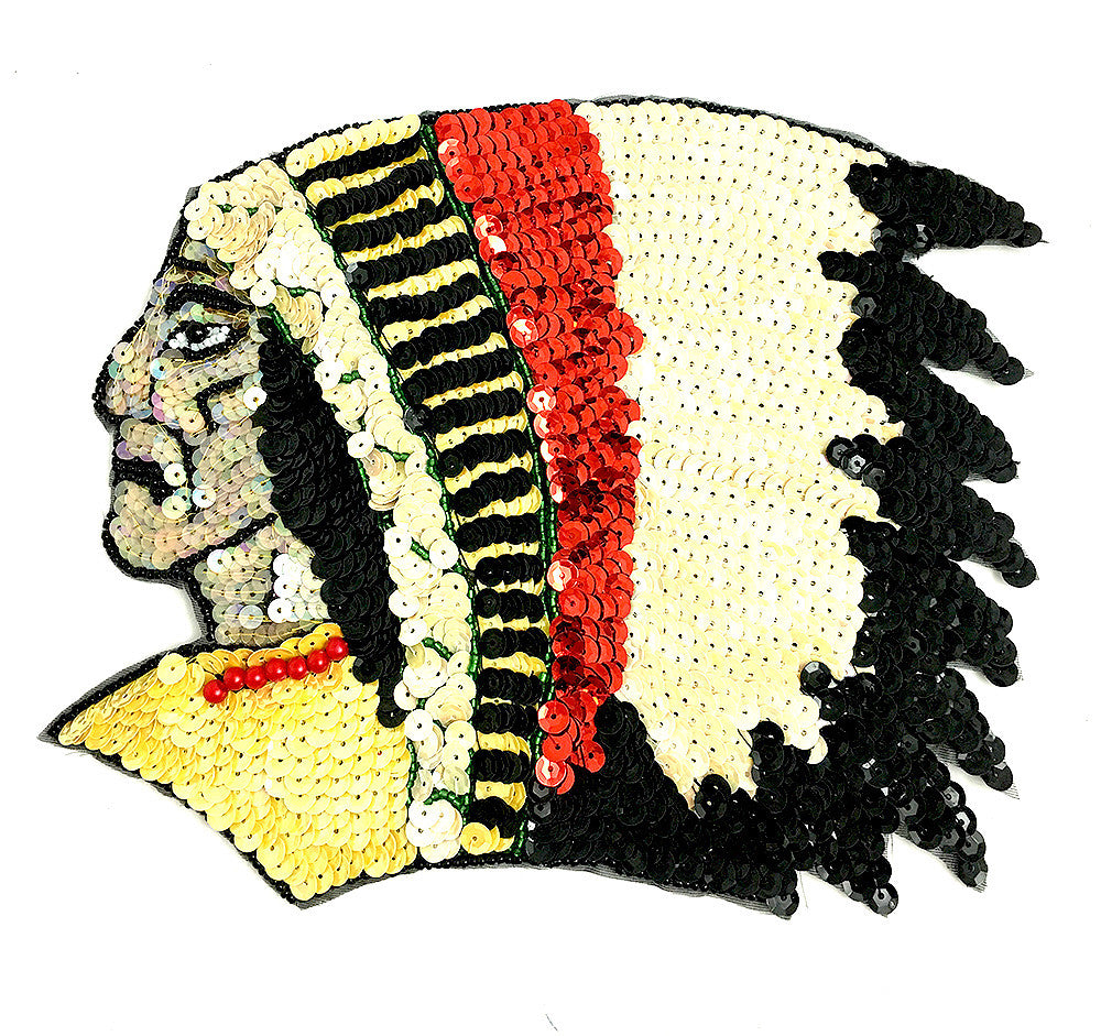 Choice of color Native American Chief Sequin Beaded 7.5" x 8"