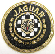 Jaguar Car Patch with Black, White Gold Sequins and Beads 12" or 6"