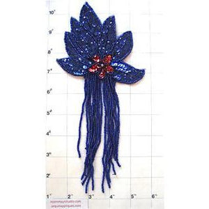 Epaulet with Royal Blue and Red Sequins and Royal Blue Beads 8.5" x 4"
