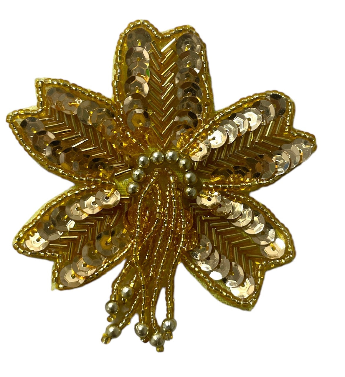 Epaulet Flower with Gold Sequins and Beads 4.5" x 3"