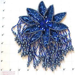 Epaulet with Blue Sequins and Blue Beads 8" x 5.5"