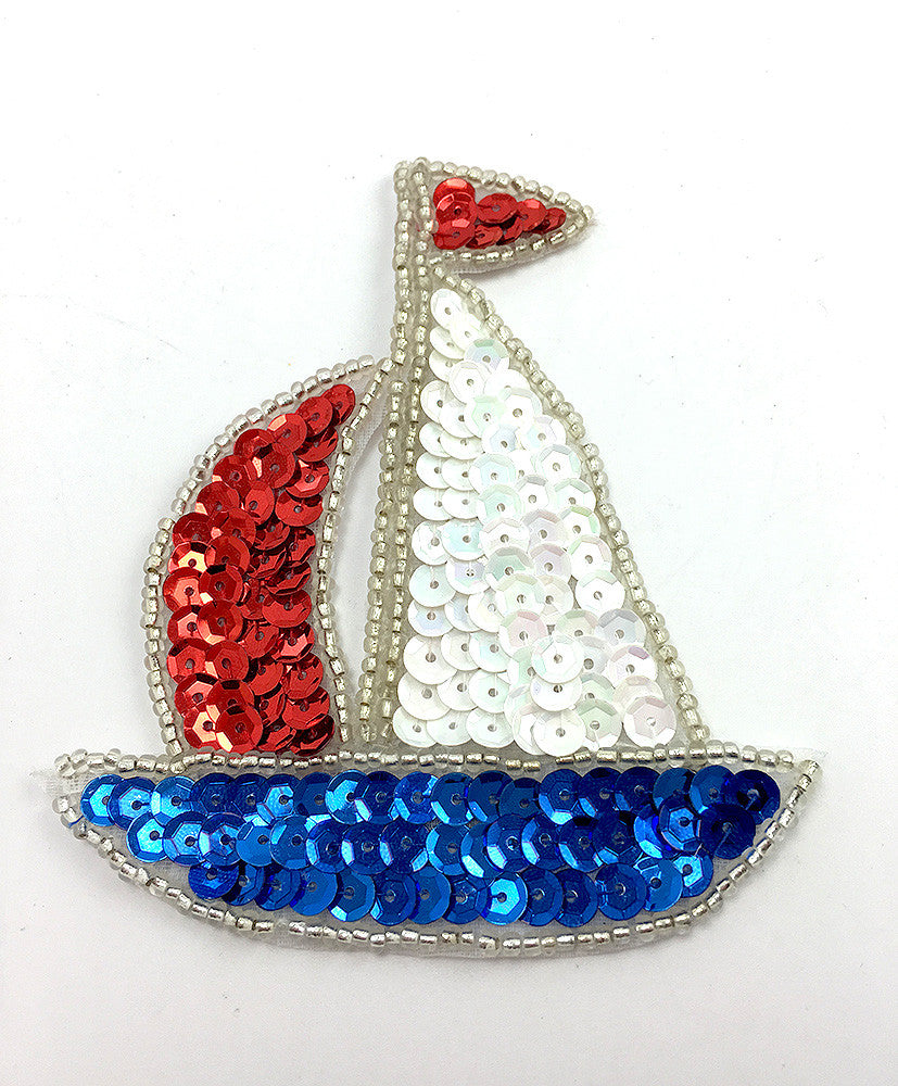 Sailboat with Red White and Blue Sequins and Beads 3.5" x 3"
