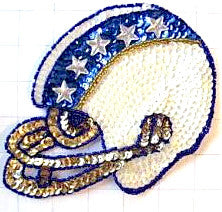 Football Helmet with White and Blue Sequins and Gold and Blue Beads with Clear Stars 6.75" x 5"