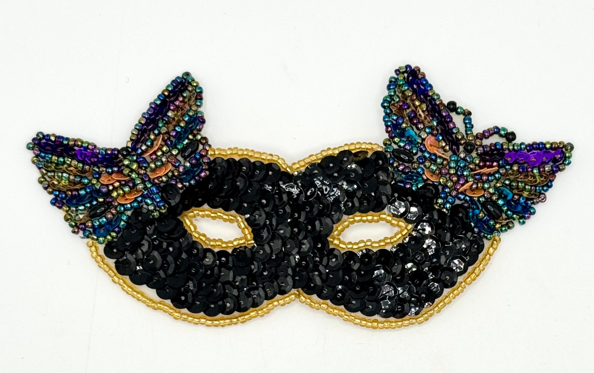 Mardi Gras Mask with Butterflies - Black and Multicolored Sequins 5.25" x 2.5"