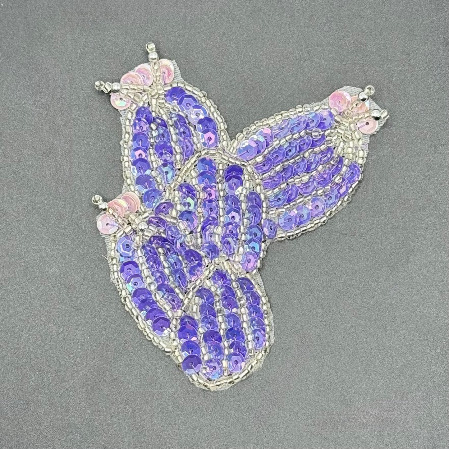 Elevate your wardrobe with our Flowering Cactus Appliqué! Adorned with sparkling purple sequins and delicate lavender flowers, this 3" x 3" appliqué adds a unique touch of nature to any outfit. Stand out in style and make a statement with this stunning accessory.