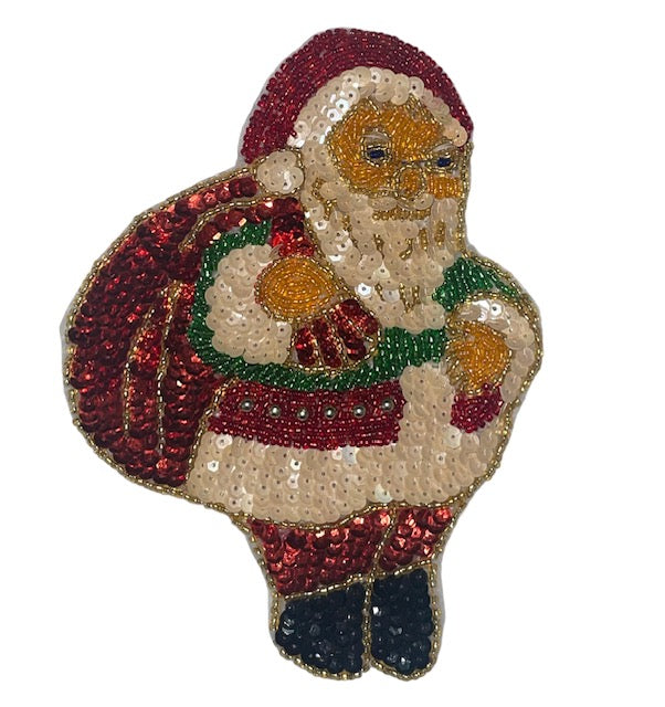 Old Time Santa with Bag - Red, Black, and Beige Sequins - Red, Gold, Green, Yellow, Blue and Silver Beads - 6.75" x 4.75"
