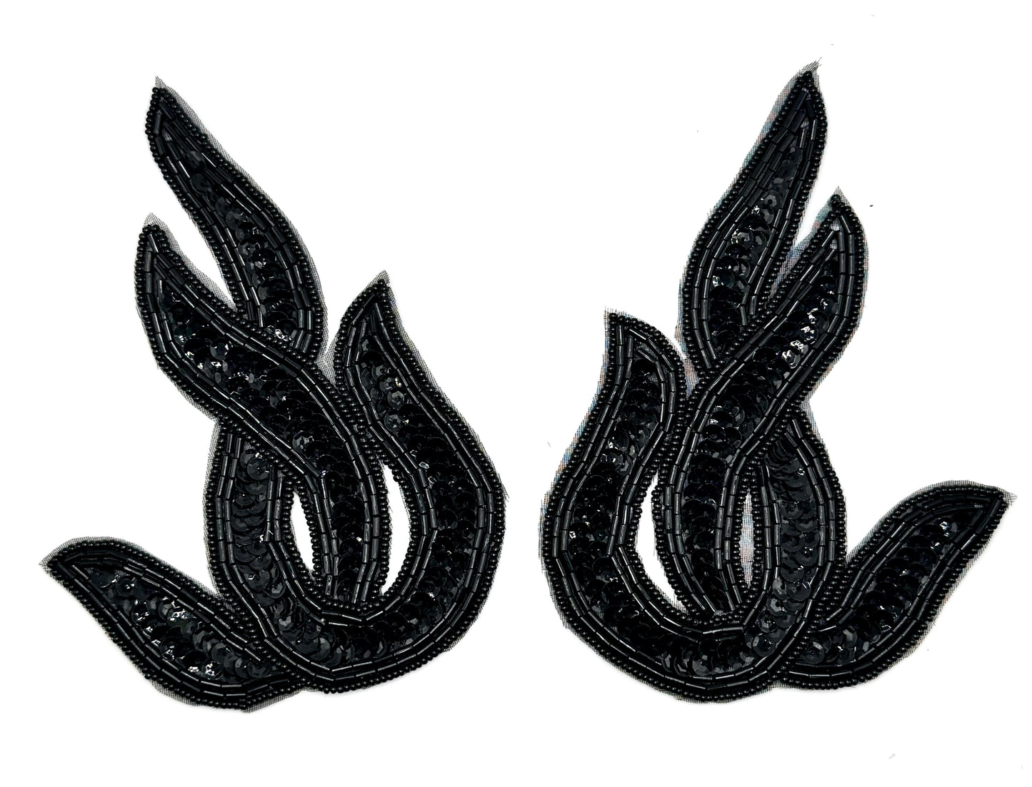 Handmade Leaf Appliqué Pair with Black Sequins and Beads 6" x 4"