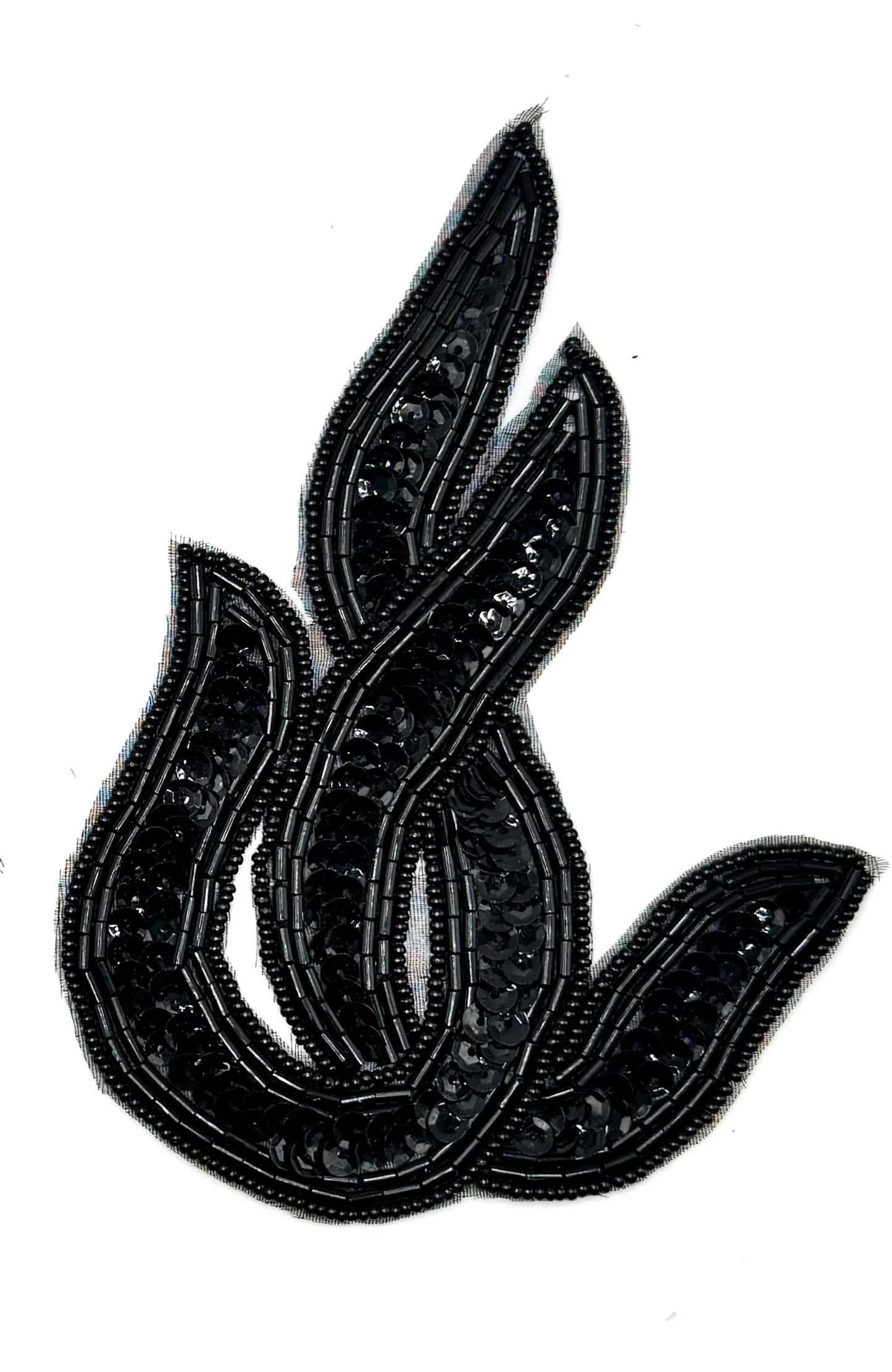 Expertly handcrafted, these unique leaf appliqués feature intricate black sequins and beads, adding an elegant touch to any project. Measuring 6" x 4", each is meticulously crafted for a perfect fit every time. Enhance your creations with these beautiful handmade details.