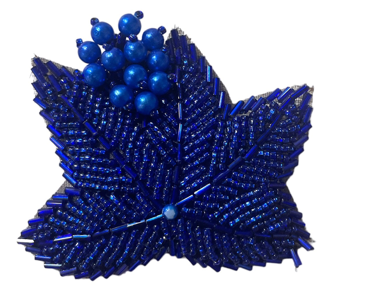 Leaf Epaulet with Royal Blue Beads 2.5" x 3"