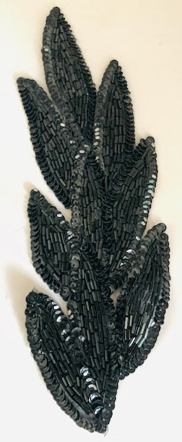 Leaf Design Appliqué with Black Sequins and Beads 9" x 3"