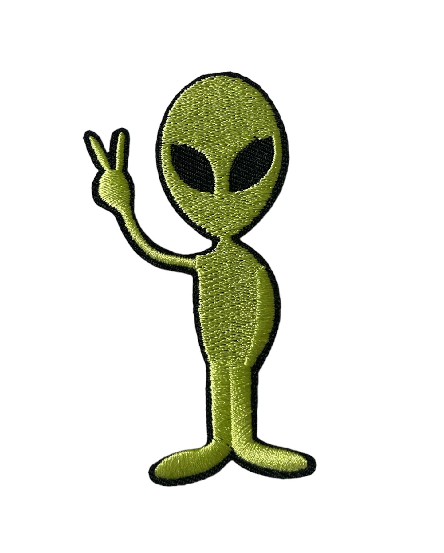 Alien, Green Embroidered Iron-On 3.5" x 1.5"