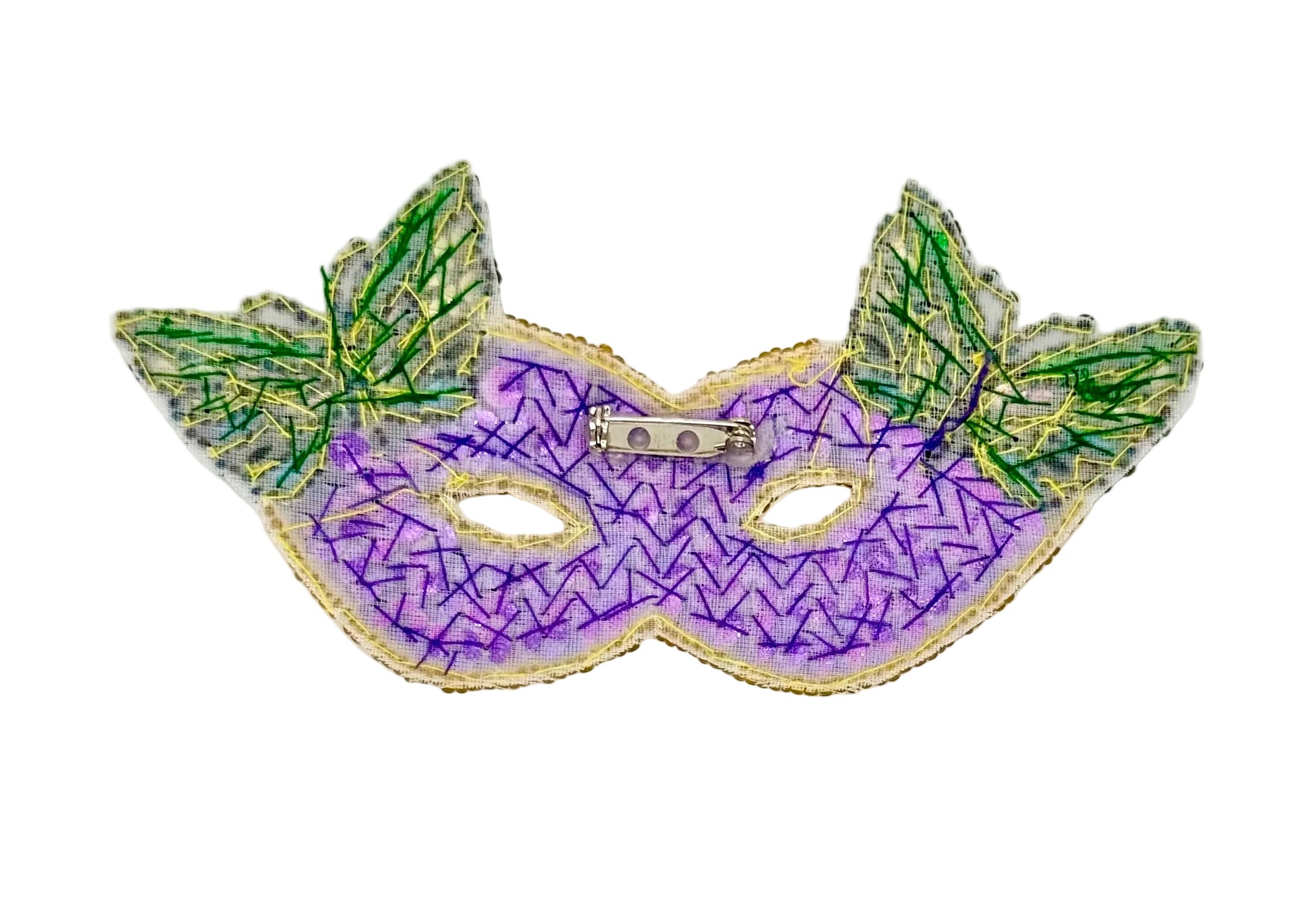 Mask with Butterflies - Purple Sequins and Gold Beads 5" x 2.5"