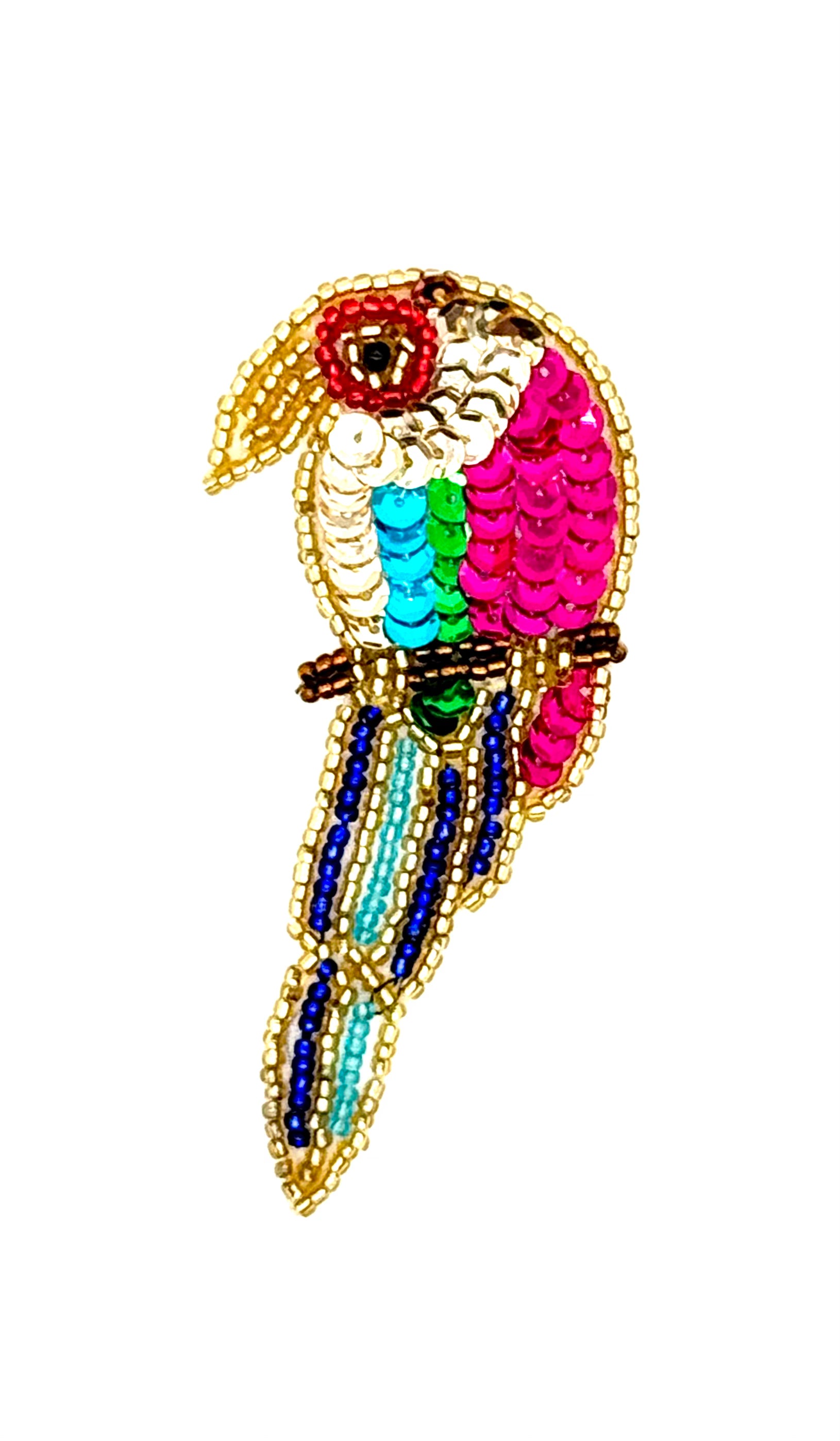 Parrot Pair Perched on Branch with Multicolored Sequins and Beads 3.5" x 1.5"