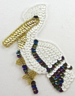 Pelican with Gold, Cream, White and Moonlight Sequins with Gold and White Beads 5” x 3.5”