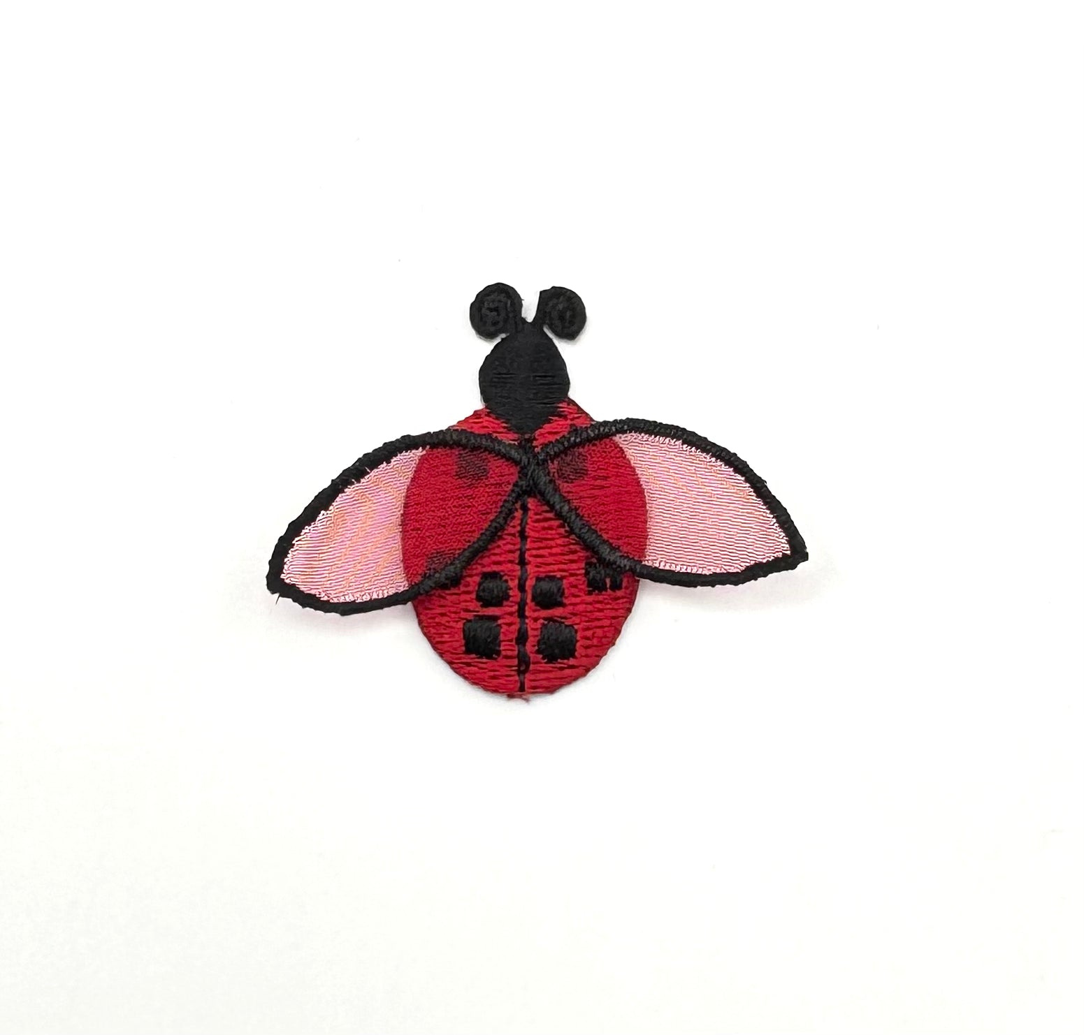 Red and Black Embroidered Ladybug with Sheer Red Wings 1.75" x 1.5"