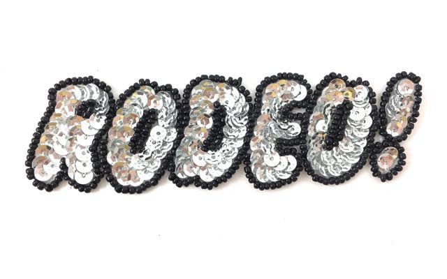 Rodeo Word - Silver Sequins and Black Beads 4.5” x 1.5”