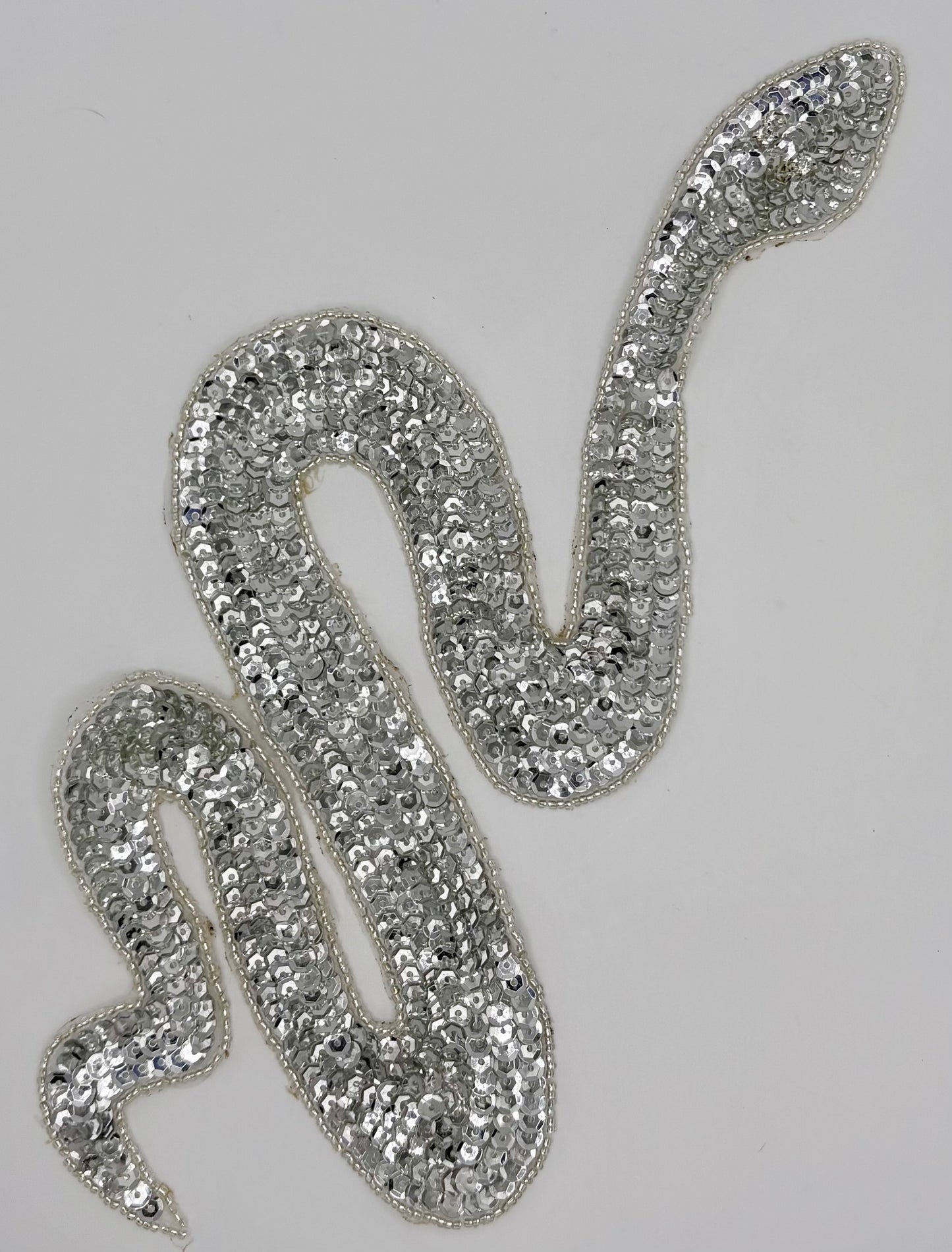 Silver Sequin Snake Appliqué with Rhinestone Eyes 11.5" x 5"