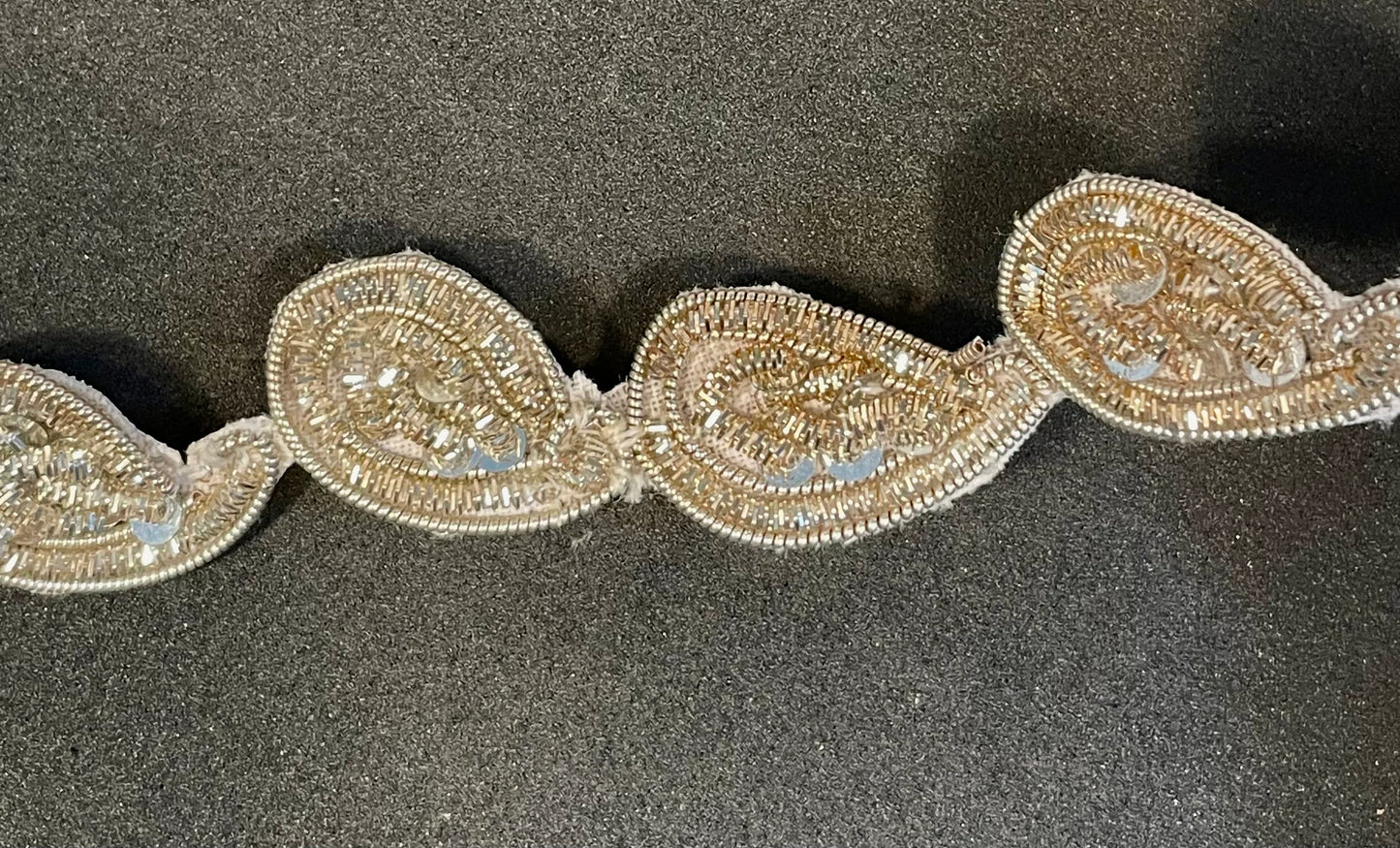 Trim with Silver Paisley Shaped Bullion Pieces Attached 1/2" Wide
