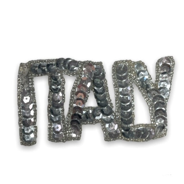 Italy Word with Silver Sequins and Beads 2" x 4"